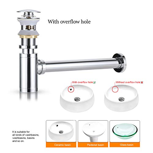 BONADE Sifone Rotonda Ottone + Pop Up di Scarico con Troppopieno Anti-corrosione e Facile da Pulire per Lavandino