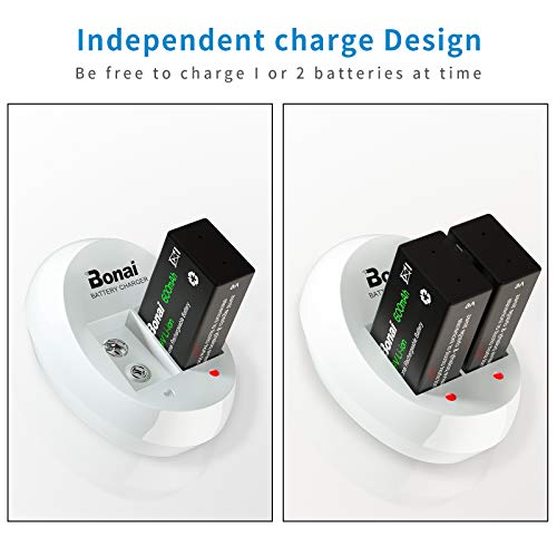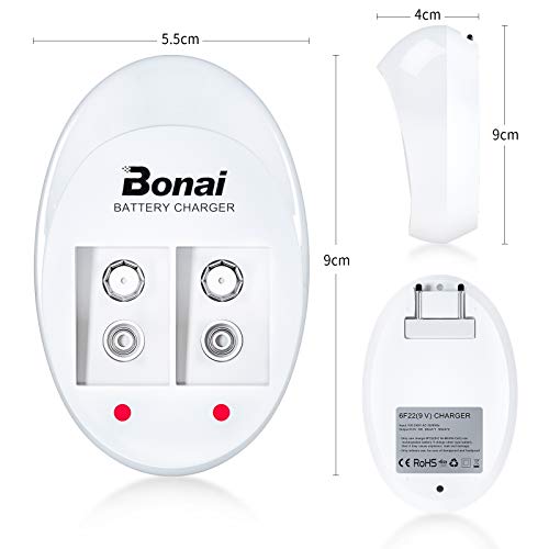 Bonai Caricabatterie Pile Ricaricabili per 9V Batterie Ricaricabili,Caricabatteria Intelligente Carica Rapida con Indicatore LED