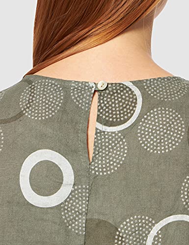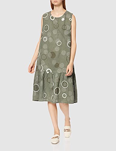 Bonamaison Abito Collo Tondo di Media Lunghezza con Stampe e Fondo Arricciato Casual Dress, Khaki Chiaro, S Womens