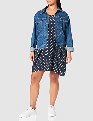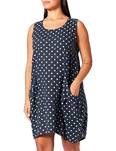 Bonamaison Abito Collo Tondo di Media Lunghezza con Tasche e Stampe a Pois Casual Dress, Marino, S Womens