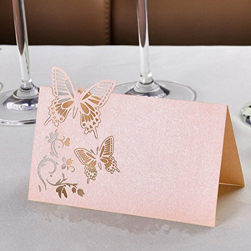 Bonarty 50 Pezzi Segnaposto Farfalla Numero di Tavola Carta Portamemo Abbellimento - Rosa