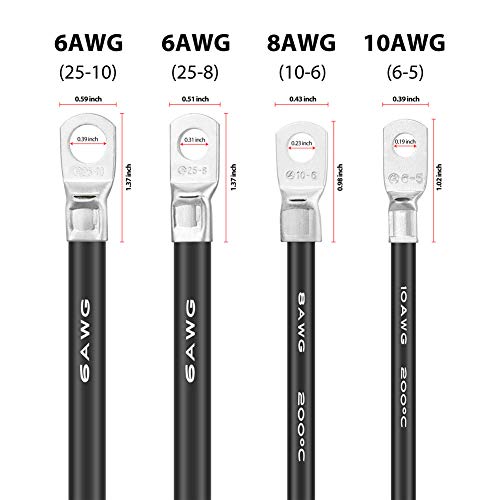 BONATECH Cavo per batteria flessibile in gomma siliconica da 50 cm, rosso e nero, 6 AWG, 8 AWG, 10 AWG, con terminali ad anello in rame stagnato (8 AWG (10-6)