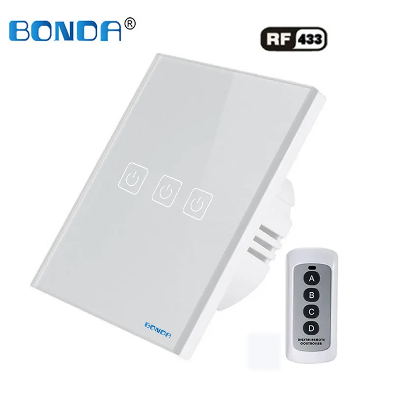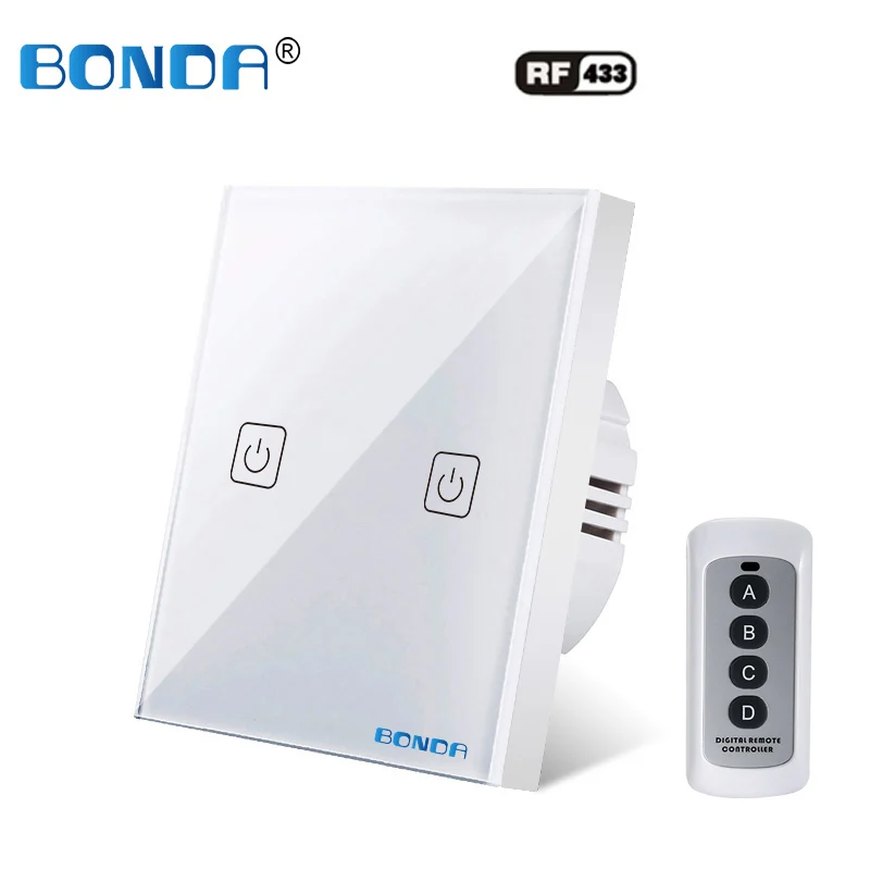BONDA Genuine EU / UK Standard Wall Switch 1/2/3 Open Wireless Remote Touch Switch Luxury Crystal Glass Panel Light Switch