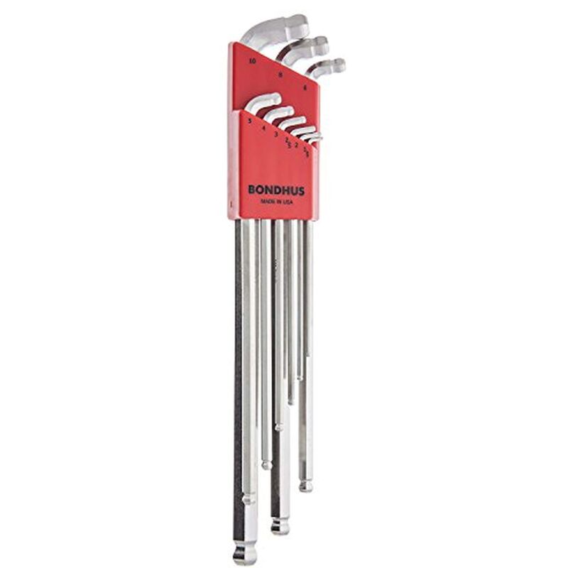 Serie chiavi esagonali piegate Balldriver DoubleBall, estremità del lato extra-lungo a sfera poliedrica 25°, estremità del lato corto a sfera poliedrica 15°.