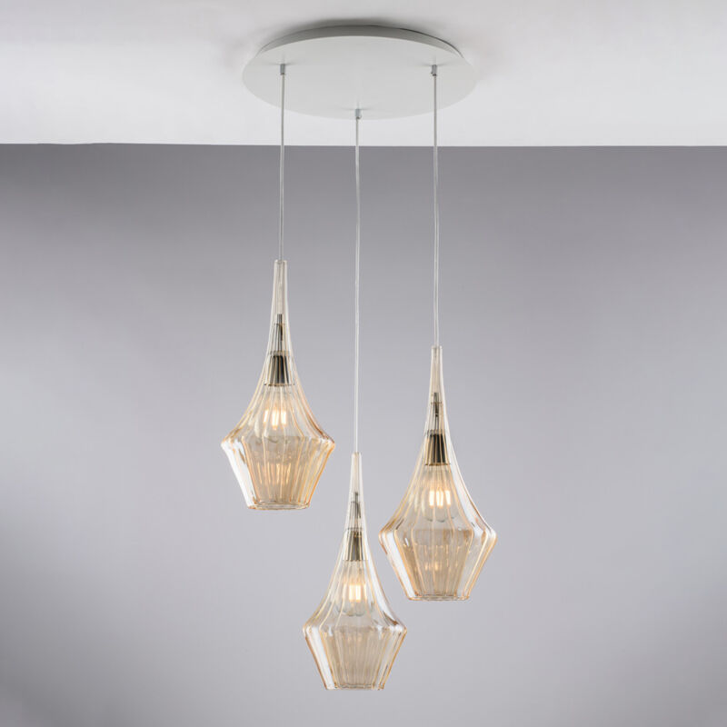 Sospensione in ferro con vetri ambra pyrex 3 luci