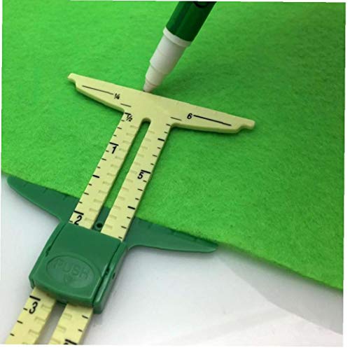 Questo calibro versatile prende il posto di cinque nozioni distinte: gague "t", gague, cerchio bussola, asola distanziatori, calibro margine di cucitura.