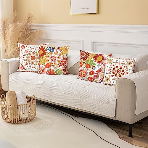 Bonhause Federe per Cuscini Boho Autunno 45 x 45 cm Copricuscini Decorativi Fiore Boemia Velluto Morbido Federa per Cuscino Divano Letto Casa Giardino All'aperto Decorazione Set di 4
