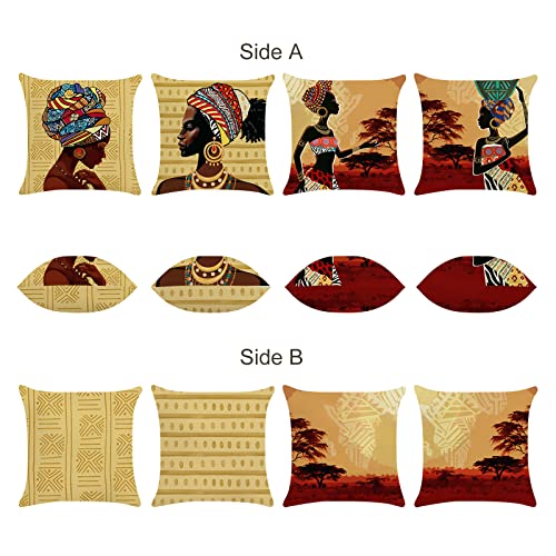 Bonhause Federe per Cuscini Donne Africane 45x45cm Copricuscini Decorativi Etnico Tribale Poliestere Biancheria Federa per Cuscino Divano Letto Casa Decorazione Set di 4