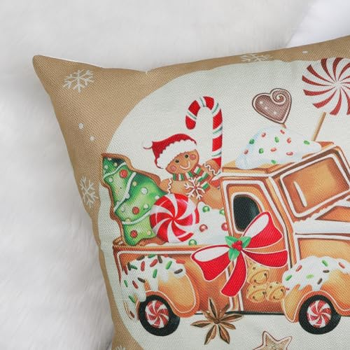 Bonhause Federe per Cuscini Natale Pan di Zenzero 45 x 45 cm Copricuscini Decorativi Camion Panetteria Natale Poliestere Biancheria Federa per Cuscino Casa Vacanze Decorazione Set di 4