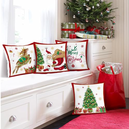 Bonhause Federe Cuscini Natalizi 45x45cm Babbo Natale Copricuscini Decorativi Albero di Natale Renna Velluto Morbido Federa per Cuscino Divano Letto Casa Decorazione Natalizia Set di 4