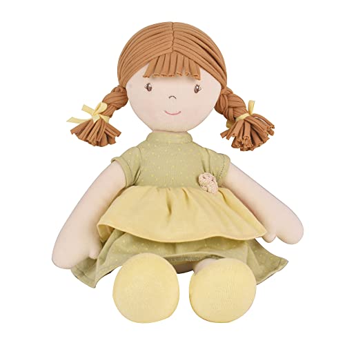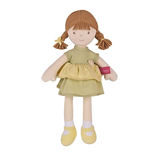 Miele ha i capelli beige indossato in trecce e indossa un abito verde menta