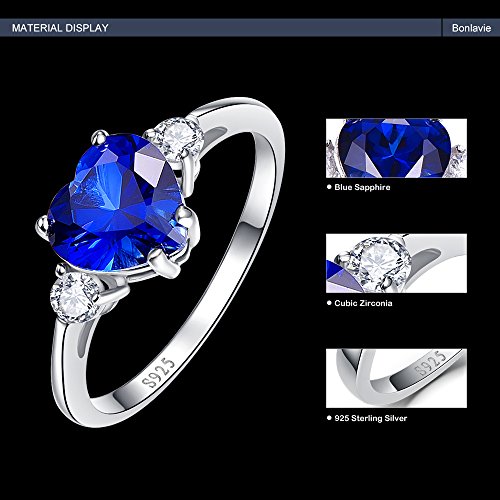 Bonlavie Anello da donna in argento Sterling 925 a forma di cuore con zaffiro blu e zirconia cubica da 2,25 ct, Zircone bianco, Zaffiro artificiale
