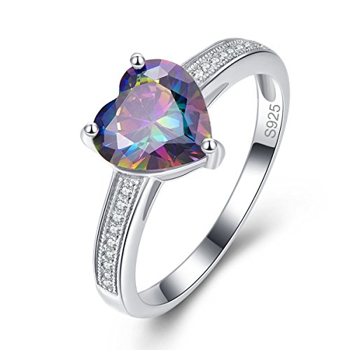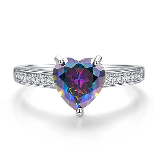 Bonlavie, anello da donna in argento Sterling 925, con pietra di topazio color arcobaleno a forma di cuore, con zirconi, 8 x 8 mm, 3,2 ct