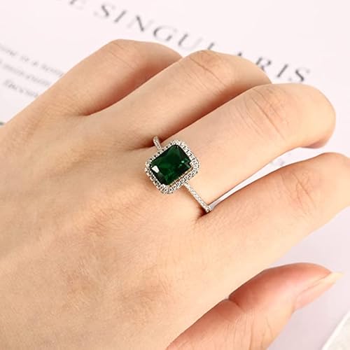 Bonlavie - Anello per donna in argento sterling 925 con smeraldo zircone con taglio smeraldo. Da regalare in occasione di fidanzamenti, matrimoni.