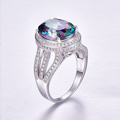 Bonlavie Solitaire anello di fidanzamento in argento Sterling 925 con 10 * 14 mm taglio ovale creato topazio arcobaleno, Argento, 11, colore: Rainbow, cod. 022R2-6