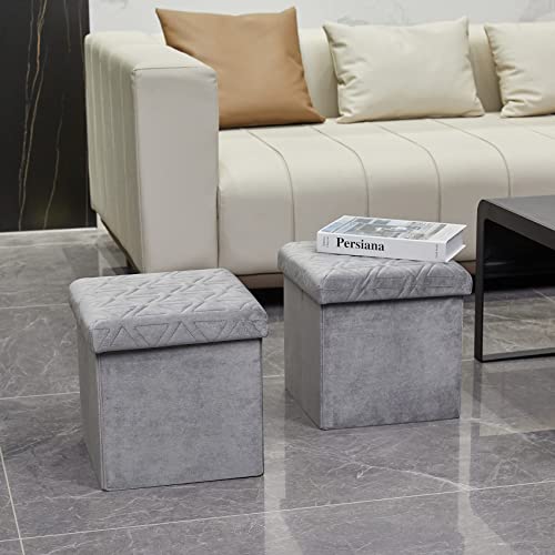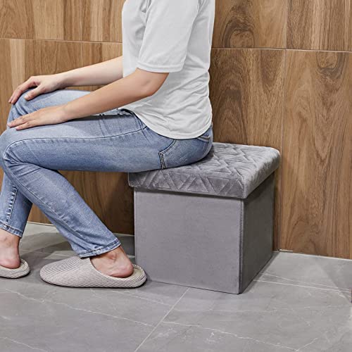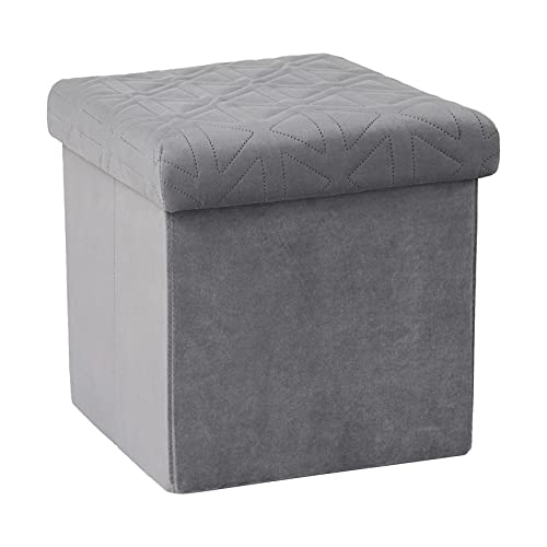 Bonlife Grigio Cassapanca Contenitore Bambini Pouf Piccolo,Puff Contenitori Velluto Cassa Giocattolo,Baule Pieghevole Mobili Salvaspazio 32x32x32cm