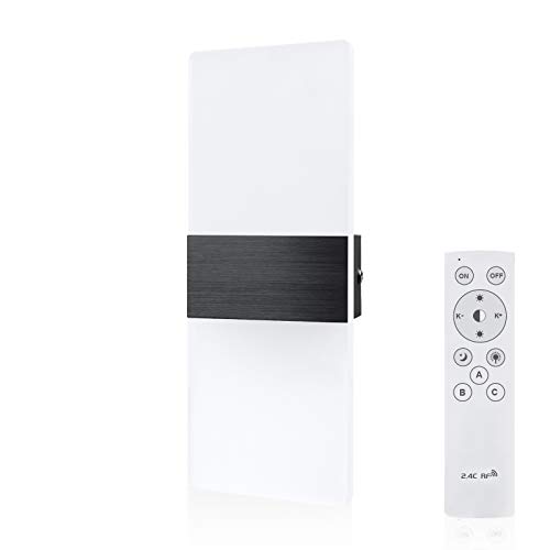 Bonlux Applique da parete per interni neri con telecomando, moderna lampada da parete per interni a led, lampada da parete in acrilico dimmerabile perfetta per corridoio, bagno (confezione da 1)