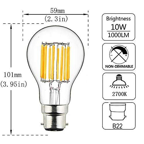 Non-dimmable 10W E27 LED lampadina a filamento classico GLS, Edison vite ES Cap, 1000 lumen, bianco caldo 2700K;