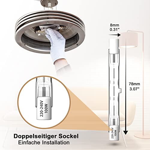 Alta luminosità: la potenza della lampadina alogena è di 100 W, che può emettere una luce bianca calda da 2800 K, piacevole luce calda, alta luminosità, rendendo la zona calda e luminosa.