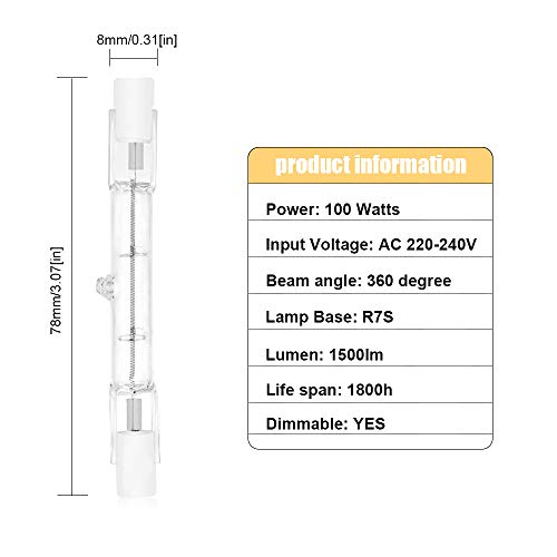 *Lunghezza di 78 mm: questa lampadina alogena da 100 W R7s è di 78 mm, non 118 mm, controllare attentamente prima di effettuare l'ordine;