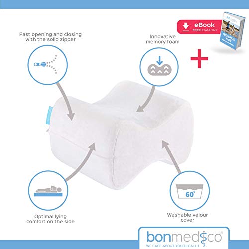Bonmedico Cuscino per Gambe - Cuscino Ergonomico Ortopedico per Ginocchia, in Memory Foam - Ideale per Dormire sul Fianco - Cuscino Riposagambe, Bianco