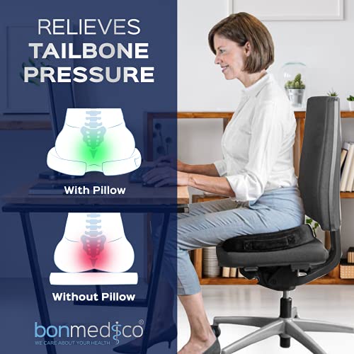 Sollievo Istantaneo: Il cuscino posturale di bonmedico è progettato per alleviare il dolore a schiena e fondoschiena dopo lunghi periodi seduti. Distribuisce equamente il peso per offrire un sollievo immediato e duraturo