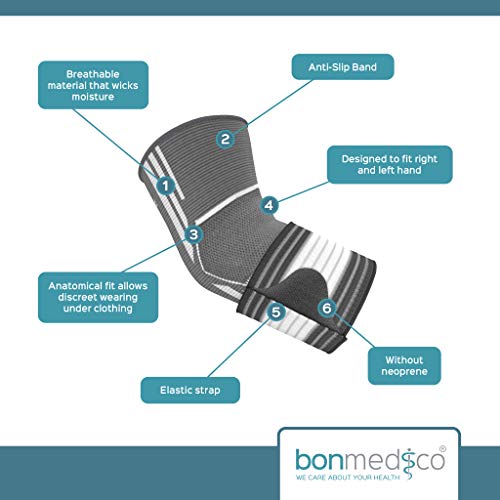 Bonmedico Tutore Epicondilite Gomito - Gomitiera per Tendinite, Protezione Braccio e Avambraccio - Fascia Elastica di Compressione Sportiva Uomo Donna