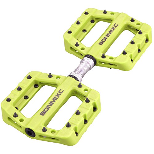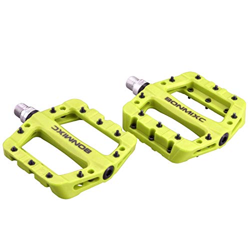 BONMIXC Pedali MTB Pedali Bici Leggeri Piatti per Bici Da Strada Nylon Lime Verde Mountain Bike Pedali Antiscivolo 9/16