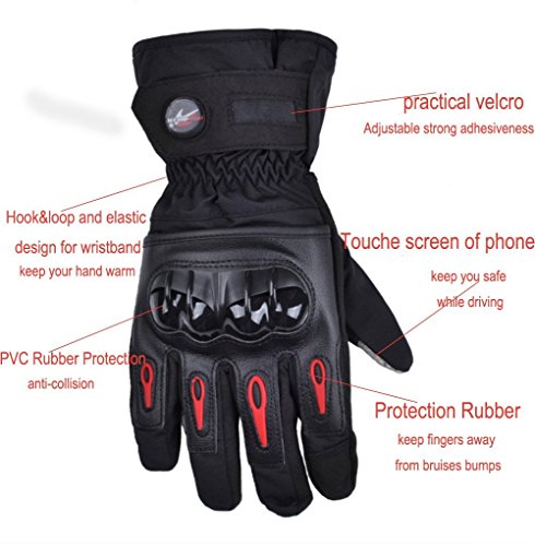 【Velcro regolabile】: Design con scocca in fibra di carbonio di protezione di guanti moto invernali uomo, velcro anticaduta su dito e scudo coperto il dorso della mano, tutti questi proteggono meglio le mani che i normali guanti