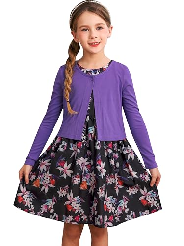 BONNY BILLY Completo Bambina Due Pezzi Cardigan Manica Lunga + Vestito Stampa Floreale Senza Maniche 8-9 Anni Completo Viola