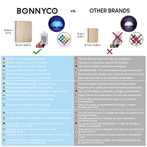 BONNYCO Lampada Libro Led Pieghevole in Legno con Telecomando 16 Colori e Timer Lampada Libro Decorazioni Casa, Camera e Ufficio | Idea Regalo Originale per Compleanno e Natale, Donna e Uomo
