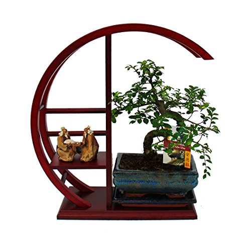 Bonsai - Ulmus parvifolia - Chinese elm on a decorative round shelf - red