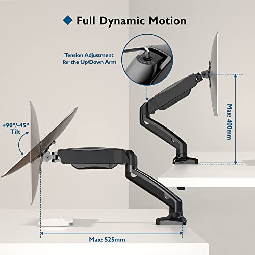 Aiuta a migliorare la salute & Produttività - Le regolazioni possono essere fatte da +90°/-45° di inclinazione verso l'alto e verso il basso, -90°/+90° di rotazione a sinistra e a destra e 360°, aiutando a ridurre il dolore al collo, agli occhi e alla schiena;