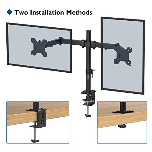BONTEC Supporto Doppio Monitor per Schermo LED LCD da 13 a 27 Pollici, Inclinazione e Rotazione Braccio Doppio Monitor fino a 8kg, Supporto Monitor Scrivania da 2 Opzioni di Montaggio, VESA 75/100mm