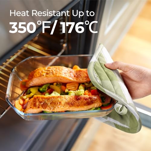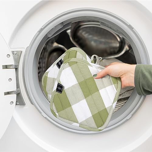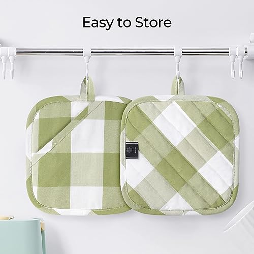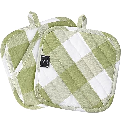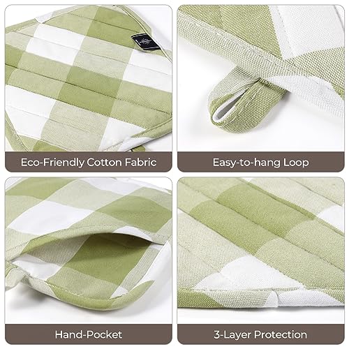 BONTHEE Presine in cotone con tasche, presine da 20,3 cm, resistenti al calore, per cucinare e cuocere in cucina, motivo scozzese verde, 2 pezzi