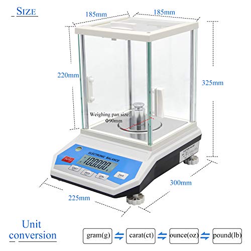 0,001 g / 1 mg ALTA PRECISIONE: questa bilancia da laboratorio è dotata di parabrezza con copertura in vetro e sensore del nucleo di pesata stabile per garantire l'accuratezza dei risultati di pesata. La sua elevata precisione lo rende competente per vari ambienti come l'industria, l'agricoltura, la chimica, l'industria mineraria, la ricerca scientifica, l'istruzione e altri settori.