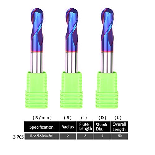 BONYTOOL 3 pezzi Fresa a testa sferica Raggio 2,0 mm Lunghezza 50 mm 8 Fresa per flauto per metallo duro Acciaio inossidabile Duttile
