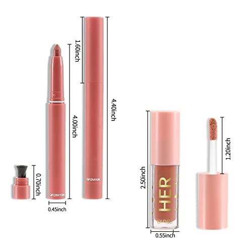 Boobeen Matte Lip Crayon + Plumping Lip Shine Moisturizing Lip Gloss Lipsticks Velvet Matte Lip Pencil Long Lasting Lip Liner Pens e Liquid Lip Glaze Makeup Set, Confezione da 2
