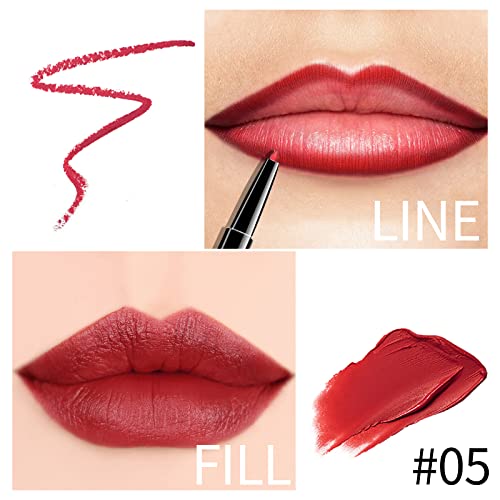 Rossetto Lip Liner 2 in 1: 5 colori a scelta, un tratto per delineare l'affascinante forma delle labbra, il classico rossetto rosso, creare istantaneamente un audace colore delle labbra opaco.