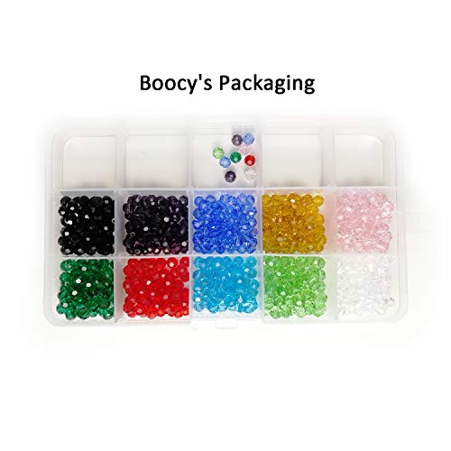 Boocy - 500 perline di vetro, 6 mm, sfaccettate, 10 tipi di colori misti, con scatola