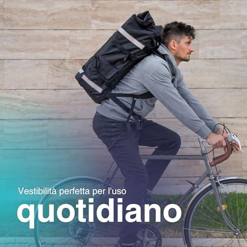 Borsa pieghevole flessibile con spazio di conservazione fine a 54 L - Questo zaino con apertura avvolgibile è dotato di un ampio scomparto principale termico dove mettere i tuoi ordini, che ti aiuta a trasportare pasti e articoli non alimentari.