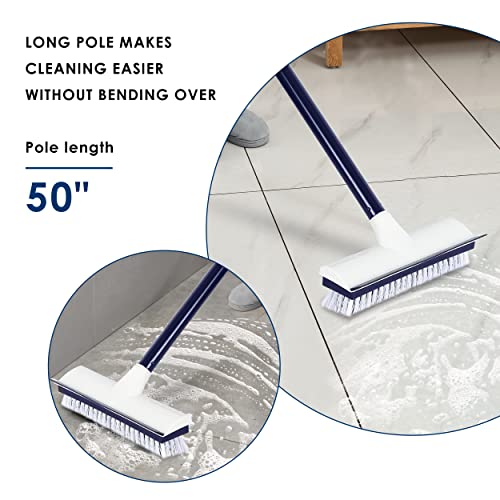 BOOMJOY Spazzola per pavimenti con manico lungo - Spazzola rigida da 127 cm, 2 in 1 raschiare e spazzola, spazzola per vasca e piastrelle, per la pulizia di bagno, patio