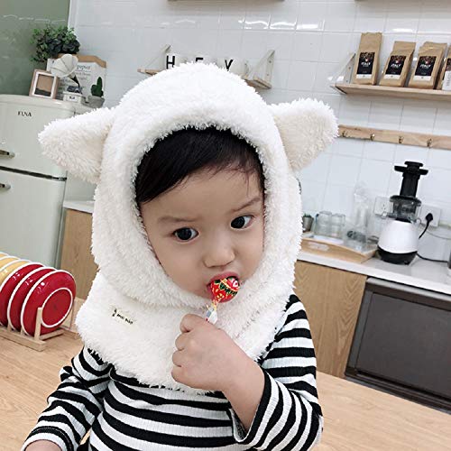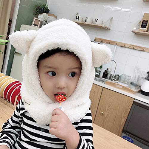 Boomly Bambini Autunno e Inverno Calda Multifunzione Scaldacollo Sciarpa con Cappuccio Copricapo Cappuccio Balaclava Berretto in Peluche Cappello da Sci (Bianco, Medium)