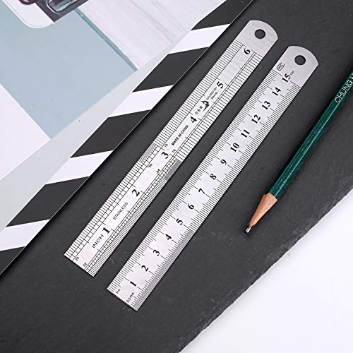 BoomYou 6 Pack 6 "righello in acciaio inox Righello di metallo da ufficio con custodia pratica di stoccaggio - bordo diritto perfetto per misurazioni facili - spessore di 20 mm x 0,6 mm