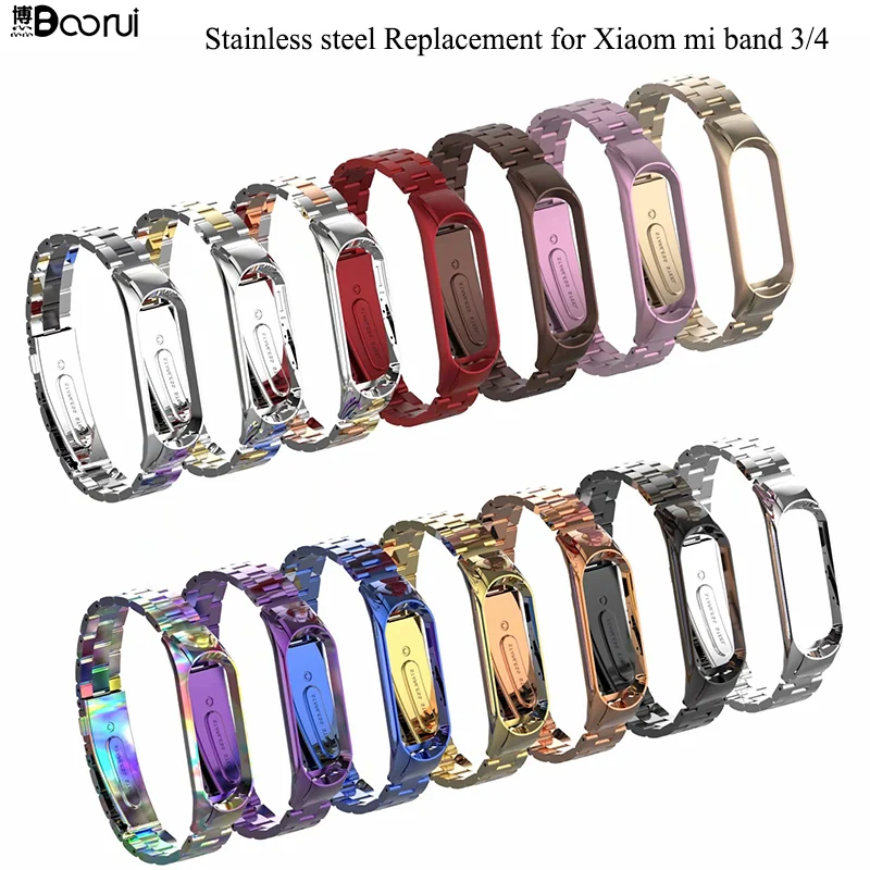 BOORUI mi band 4 5 6 strap Stainless Steel band for xiaomi mi band 3 4 5 strap metal colorful mi band 3 straps watch straps