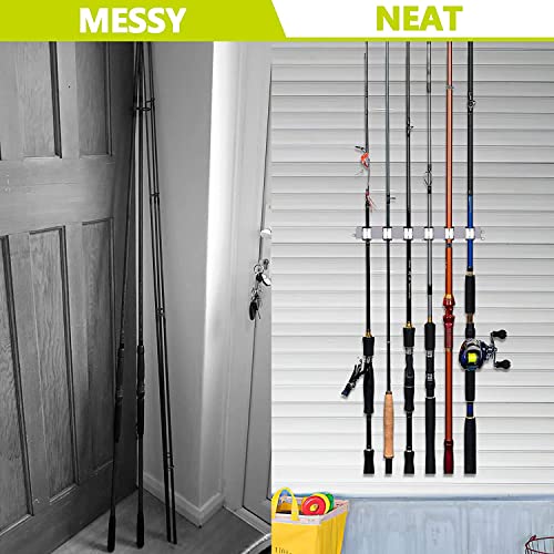 Salvaspazio: Il supporto per canna da pesca BOOSTEADY può contenere 6 canne da baseball, scopa, ecc. Il supporto multifunzione per canna da pesca può mantenere la stanza organizzata.
