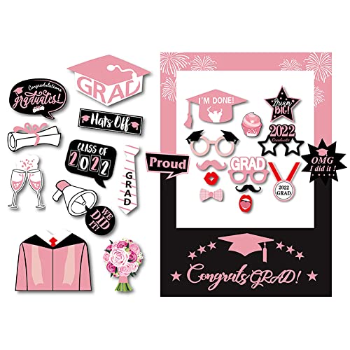 Foto Booth Puntelli di Laurea 2022(23 Pezzi),Photo Booth Props Accessori Fai da Te Cappello Occhiali Baffi su bastoni per Laurea Decorazioni della Festa