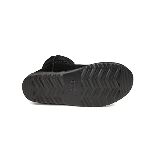 OOG Boots OB6664-Black - Stivali da neve da donna con fiocco, in vera pelle, caldi e foderati in pelliccia, antiscivolo, piatti e corti, Nero, 37 EU