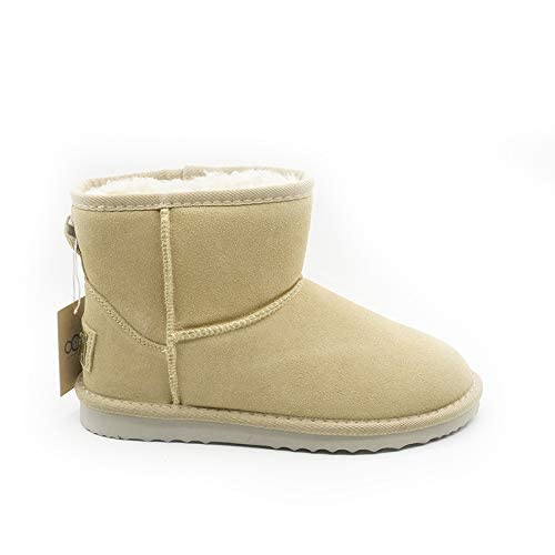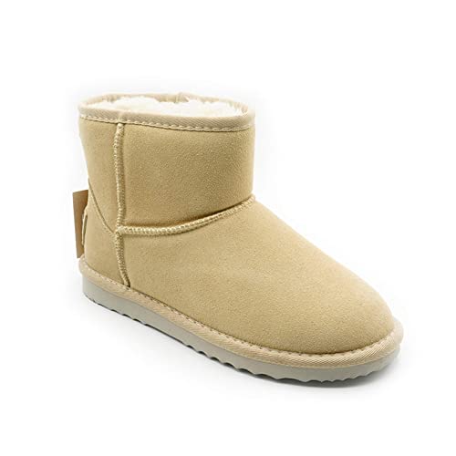 OOG Boots - Stivali da neve da donna, in vera pelle, con fiocco, antiscivolo, piatti, comodi e corti, Beige (beige.), 38 EU