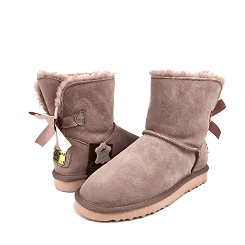 OOG Boots - Stivali da neve da donna, in vera pelle, con fiocco, antiscivolo, piatti, comodi e corti, (Fenicottero Hell1), 40 EU